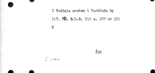 //// I Roddala socken i Varkända by //// 1:7. S.L.S. 512 s. 327 nr 151 //// * //// N //// - //// ÅBO ////