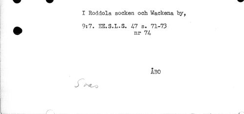 //// I Roddola socken och Wackena by, //// ^ 9:7. EE.S.L.S. A7 s. 71-73 //// i //// } //// ÅBO //// J ^Tt^) //// ^ . i' t ^ . ////