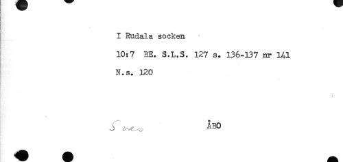 //// I I Rudala socken //// 10:7 BE. S.L.S. 127 s. 136-137 nr 141 //// N.s. 120 //// . //// * //// * //// J ÅBO ////
