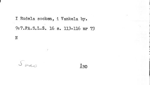 //// ) //// b //// I Rudela socken, i Vankela ty. //// * L. //// 9:7.PA.S.L.S. 16 s. 113-116 nr 73 //// N //// E //// c //// i //// # ä //// ! //// i //// L //// ^ "' ÅBO //// F //// f //// i ////