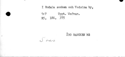 //// I Rudala socken och Vadsina by, //// ^ 9:7 Uppt* Mefvar. //// R5, 186, 375 //// ÅBO RANCKEN MS ////