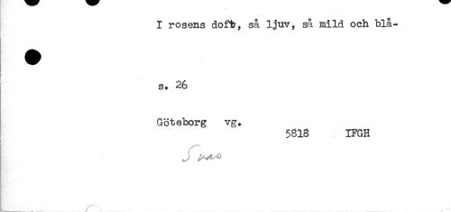 //// I rosens dofb, så ljuv, så mild och blå- //// s. 26 //// Göteborg vg. //// 5813 IFGH //// . //// J ////