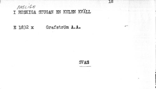 //// I RUSKIGA STUGAN EM KULEN KVÄLL //// E 1832 x Grafström A.A. //// < //// i //// < //// SV AS //// ! //// ! //// ! //// < //// 5 //// i ////