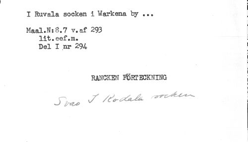 //// I Ruvala socken i Warkena by ... , //// < //// Maal.N:8.7 v.af 293 //// lit.eef.m. //// Del I nr 29A ' //// RANCKEN %RTECKNING ; //// i //// ! ////