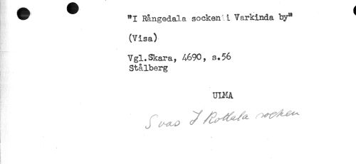 //// * **I Rangedal-a socken t Varkinda by" //// (Visa) //// . //// Vgl.Skara, A690, s.56 //// Stålberg //// ULMA ////