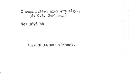 //// .. * //// I sena natten gick ett tåg... //// (Av C.A. Carlsson) //// Se: 1876 hh //// KB:s SKILLINGTHYCKSRBG. ////