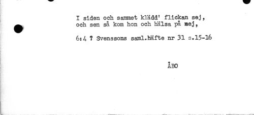 //// I siden och sammet klädd' flickan sej, //// ^^ och sen sa kom hon och hälsa pa Bej, //// 6:4 ? Svenssons saial.häfte nr 31 s.15-16 //// < //// ; //// i //// ! //// ; //// ! ÅBO ////