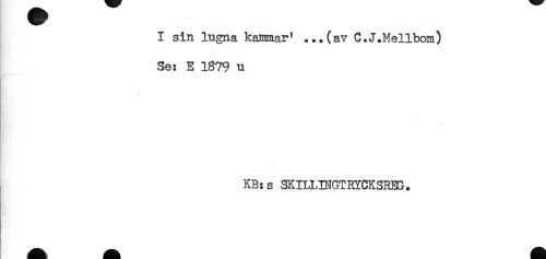 //// I sin lugna kammar' ...(av C.J.Mellbom) //// Se: E 1879 u //// . //// KB:s SKILLINGTRYCK3RBH. ////