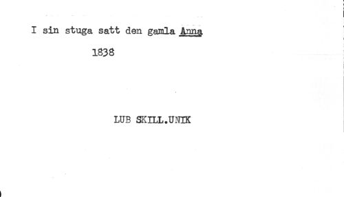//// -- -.....' I //// I sin stuga satt den gamla Anna //// 1838 //// i //// ! //// LUB SKILL.UNIK ////