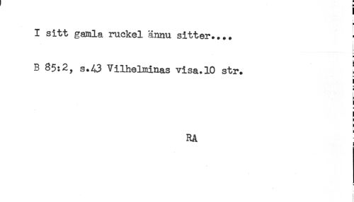 //// I sitt gamla ruckel ännu sitter.... //// a //// B 85:2, s.43 Vilhelminas visa.10 str. ! //// ! //// H //// } //// i //// ! //// i //// RA //// H //// < //// i //// ! ////