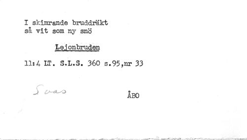 //// I skimrande bruddräkt //// så vit som ny snö //// Lejonbruden //// 11:A LT. S.L.S. 360 s.95,nr 33 //// ÅBO ////