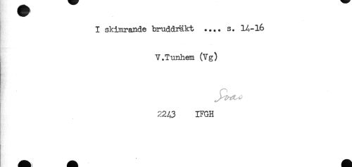 //// I skimrande bruddräkt .... s. 14-16 //// V.Tunhem (Vg) //// 2243 IFGH ////