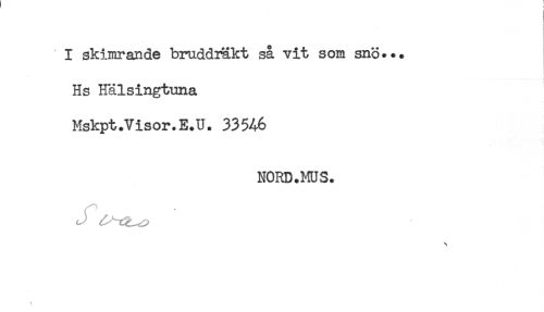 //// I skimrande bruddräkt så vit som snö... //// Hs Hälsingtuna //// Mskpt.Visor.E.U. 33546 //// NORD.MUS. ////