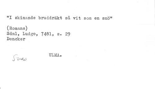 //// i //// I //// "I skinande bruddräkt så vit som en snö" //// (Romans) //// Sdml, Ludgo, 7481, s. 29 //// Dencker //// ULMA. ////