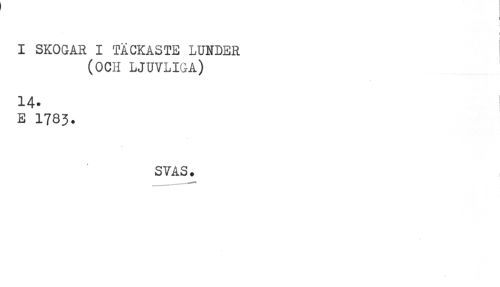 //// ] //// I SKOGAR I TÄCKASTE LUNDER //// (OCH LJUVLIGA) //// 14. //// E 1783. //// SVAS. ////