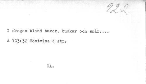 //// ^^ . //// r //// I skogen biand tuvor, buskar och snår..*. //// A 103:32 Höstvisa 4 str. //// i //// ! //// i //// RA. //// ) //// ! //// i //// ! //// ) ////