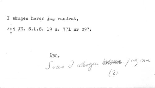 //// I skogen haver jag vandrat, //// w< //// V //// 4:4 JB. S.L.S. 19 s. 771 nr 297* //// ! //// ÅBO. ////