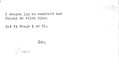 //// ..-t.,- * ! //// ' ' - L //// ) //// I skogen jag nu vandrat t har //// Ibl^md de vilda djur. //// ! //// 4:4 PA Brage 1 nr 6l. //// t //// < //// i //// i //// t //// ÅBO. //// * ////