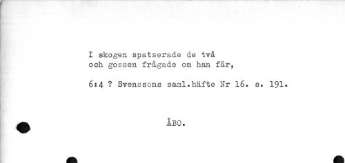 //// - //// I skogen spatserade de två //// och gossen frågade om han får, //// 6:4 ? Svenssons saml.häfte Nr 16. s. 1$1. //// K,', //// i ^^ //// * ////