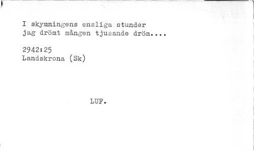 //// I skymningens ensliga stunder ' //// jag drömt mången tjusande dröm.... //// 2942:25 //// Landskrona (Sk) //// LUF. //// i //// ! ////