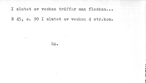 //// I slutet av veckan träffar man fleckan... //// B 45? s. 90 I slutet av veckan 4 str.kom. //// RA. //// ! //// r //// 't- //// E //// ^ //// H //// r //// B //// h //// ! ////