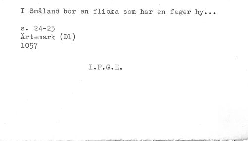 //// I Småland bor en flicka som har en fager hy... //// s. 24-25 //// Ärtemark (Dl) //// 1057 //// t //// I.F.G.H. ////