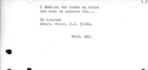 //// I Småland där bodde en bonde //// han hade en endaste tös... //// Dr Leksand //// Mskpt. visop, E.U. 3II84. //// NORD. ms. //// * //// * ////