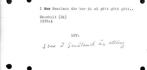 //// I Sam Smaulann där har di så gött gött gött.. //// * //// t //// H //// Skarhult (Sk) //// 2276:4 //// LUF. //// Ry //// t ////