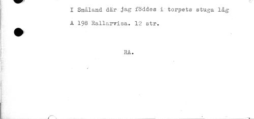 //// i I Småland där jag föddes i torpets stuga låg //// A 198 Rallarvisa. 12 str. //// i' RA. //// i //// f //// * //// j //// L ______^.....:_i...............^_'............ ////