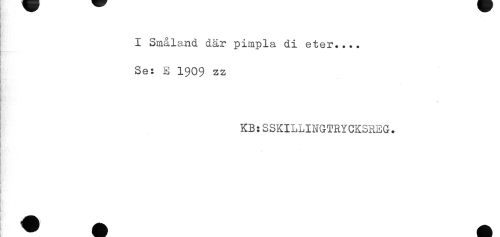 //// I Småland där pimpla di eter.... //// Se: E 1909 zz //// yl //// KB:SSKILLINGTRYCKSREG. ////