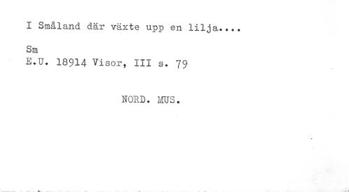 //// I Småland där växte upp en lilja.... //// Sm //// E.U. 18914 Visor, III s. 79 //// NORD. HUS. //// ....... ' „ . - - ////