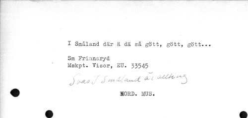//// I Småland där ä dä så gött, gött, gött... //// Sm Frinnaryd //// Mskpt. Visor, EU. 33545 //// ^ HORD. MUS. ////