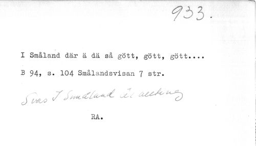//// < //// * //// I Småland där ä dä så gött, gött, gött.... //// i //// B 94, s. 104 Smålandsvisan 7 str. //// t //// t //// RA. //// ! ////