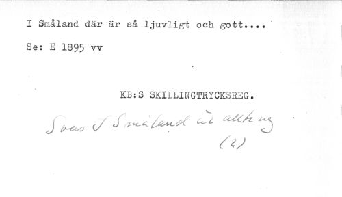//// I Småland där är så ljuvligt och gott.... //// Se: E 1895 vv //// i //// KB:S SKILLINGTRYCKSREG. ////