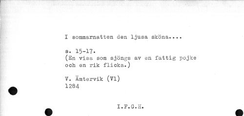 //// i - I sommarnatten den ljusa sköna.... //// s. 15-17* //// (En visa som sjöngs av en fattig pojke //// och en rik flicka.) //// V. Ärntervik (Vi) //// ^ 1284 //// I.F.G.H. ////