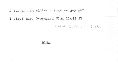 //// H //// I sorgen jag sitter i ängslan jag går : //// - //// - //// 1 strof mus. Overgaard Ulma 11642:25 ^ //// s //// a //// < //// f //// f //// t //// c //// ULMA. I //// t //// L //// t- ////