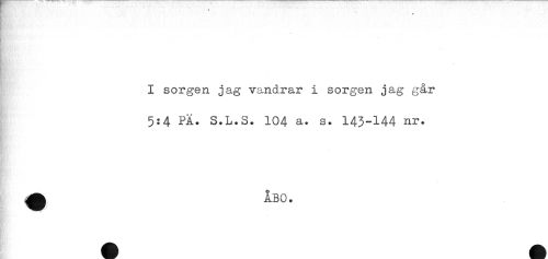 //// I sorgen jag vandrar i sorgen jag går //// 5:4 PÄ. S.L.S. 104 a. s. 143-144 nr. //// . //// Hg]' //// K ////
