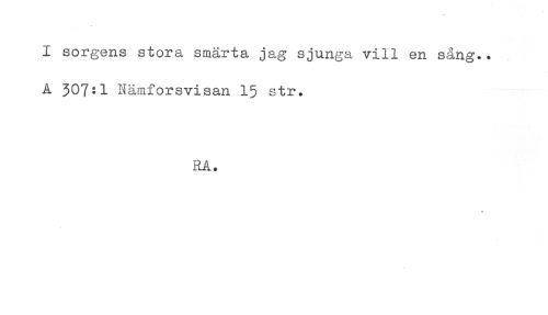 //// I sorgens stora smärta jag sjunga vill en sång.. //// Å 307^1 Nämforsvisan 15 str. //// RA. //// * ////