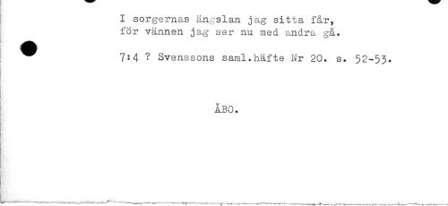 //// I sorgernas ängslan jag sitta får, //// för vännen jag ser nu med andra gå. //// } ^ 7:4 ? Svenssons saml.häfte Nr 20. s. 52-53. //// ÅBO. //// i //// H //// } ////