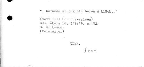 //// * . //// "I Sorunda är jag båd buren å kläckt." //// ^^ (text till Sorunda-valsen) //// Sdm. Åkers hd, 347:59, s. 32. //// G. Eriksson. //// ) (Valstexter) //// t ^ //// ULI^IA. ////