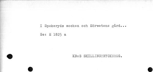 //// - //// * //// I Spekeryds socken och Sörwetens gård... //// Se: E 1825 a //// Rf' //// ^ KB:S SKILLINGTRYCKSREG. //// K ////