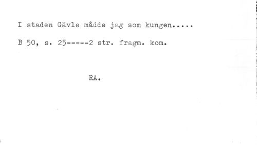 //// ! //// ^ //// i- //// I staden Gävle mådde jag som kungen..... //// B 50, s. 25-----2 str. fragm. kom. //// i //// ! //// RA. //// ! //// t ////