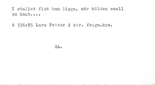 //// I stallet fick han ligga, när kölden small //// om knut.... //// A 326:85 Lars Petter 4 str. fragm.kom. //// < //// RA. ////