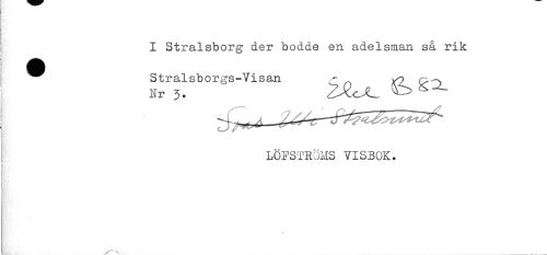 //// I Stralsborg der bodde en adelsman så rik //// } ^^ Stralsborgs-Visan - ^ //// ^ Nr 3 - S - //// LÖFSTRÖMS VISBOK. //// ______ ////