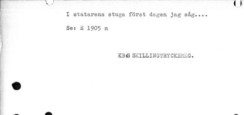 //// I statarens stuga först dagen jag såg.... //// E: //// ; Se: E 1905 n //// KBS SKILLINGTRYCKSREG. ////