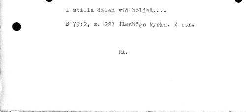 //// I I stilla dalen vid holjeå.... //// i ^ B 79:2, s. 227 Jämshögs kyrka. 4 str. //// RA. ////
