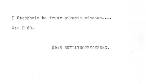 //// I Stockholm bo fruar pikanta minsann.... //// Se: P 60. //// KB:S SKILLINGTRYCKSREG. ////
