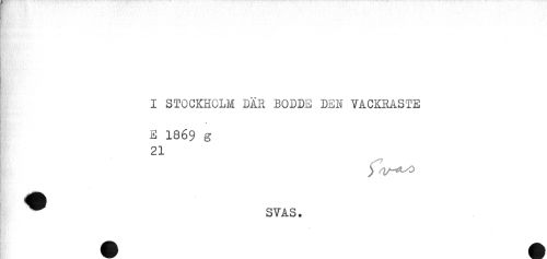 //// I STOCKHOLM DÄR BODDE DEN VACKRASTE //// E 1869 g //// 21 //// ^ SVAS. ////