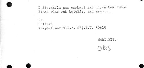 //// I Stockholm som ungkarl man nöjen kan finna //// Bland glas och buteljer men mest.... //// : ** //// Dr //// Sollerö //// Mskpt.Visor VII.s. 857*^*11* 30615 //// * //// NORD. MUS. //// oas //// ) t ////
