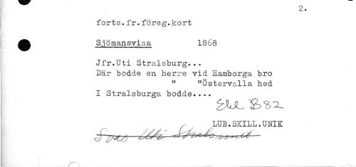 //// < <L- # //// forts.fr.föreg.kort //// i //// ^^ Sjömansvisa 1868 //// Jfr.Uti Stralsburg... //// Där bodde en herre vid Eamborga bro //// } " "Östervalla hed //// < //// I Stralsburga bodde.... //// ^ LUB.SKILL.UNIK //// ? / \ * '' *** ////